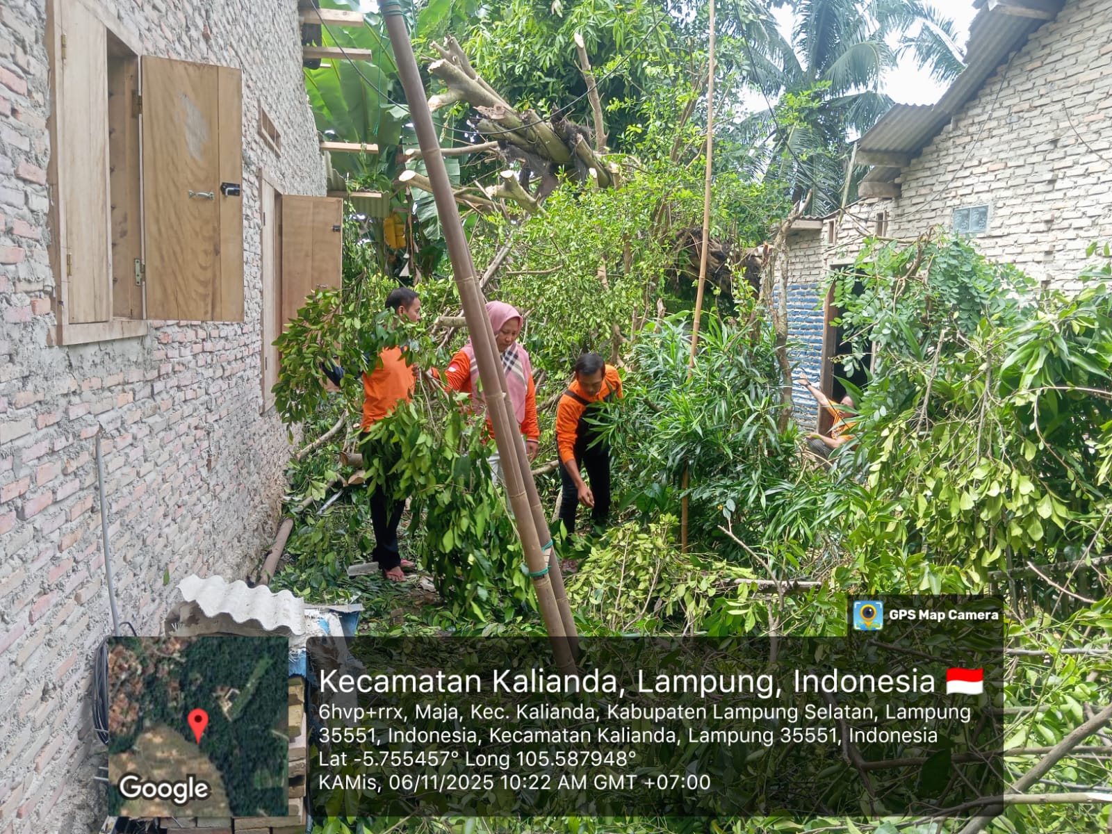 Mengetahui peristiwa itu, Tim Desa Tangguh Bencana (Destana) Desa Maja segera melakukan upaya penanganan cepat bersama BPBD Kabupaten Lampung Selatan, Dinas Lingkungan Hidup (DLH) Lampung Selatan, pemerintah desa, serta masyarakat setempat. Sejak pagi hari, tim gabungan bergotong royong melakukan pembersihan dengan memotong dan menyingkirkan batang serta ranting pohon yang menimpa rumah warga agar tidak menimbulkan bahaya lanjutan.