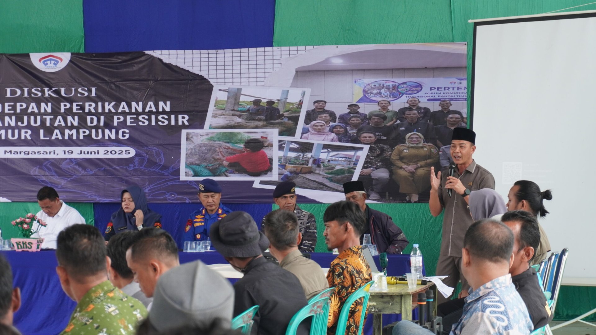 Diskusi ini menghadirkan sejumlah narasumber penting dari berbagai institusi, antara lain Komisi II DPRD Provinsi Lampung dan Kabupaten Lampung Timur, Dinas Kelautan dan Perikanan Provinsi Lampung, Polairud Polda Lampung, serta pihak terkait lainnya. Materi yang dibahas mencakup kebijakan pengelolaan kawasan perikanan, Kawasan Konservasi Perairan Way Kambas (KKPWK), dan penegakan hukum di laut.
