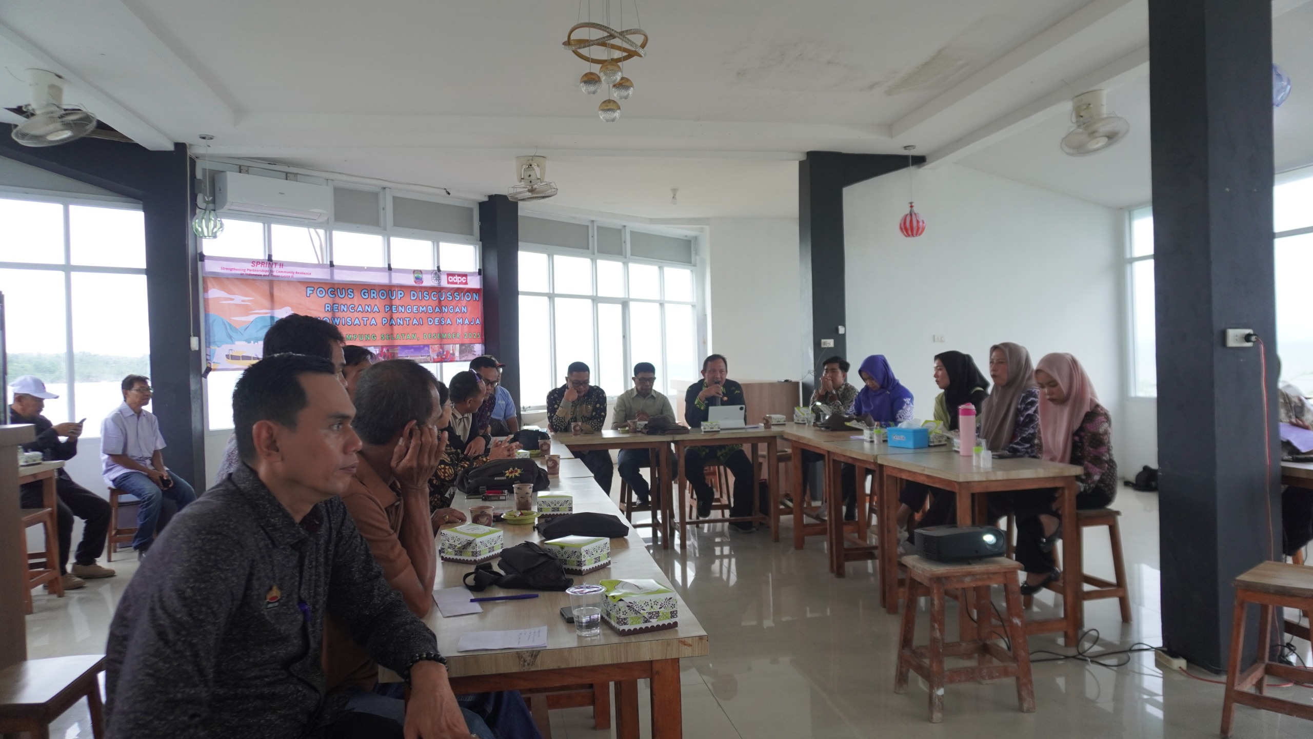 Kegiatan FGD ini dihadiri oleh berbagai pemangku kepentingan, antara lain perwakilan Badan Penanggulangan Bencana Daerah (BPBD) Kabupaten Lampung Selatan, Dinas Pariwisata Kabupaten Lampung Selatan, Pemerintah Desa Maja, Pokdarwis Desa Maja, akademisi dari Universitas Lampung (Unila) dan Universitas Indonesia Mandiri (UIM) Lampung Selatan, Destana, Pemerintahan, Pokdarwis dan FPRB Desa Maja, Penginapan Lamban Queen, serta Media Lokal.